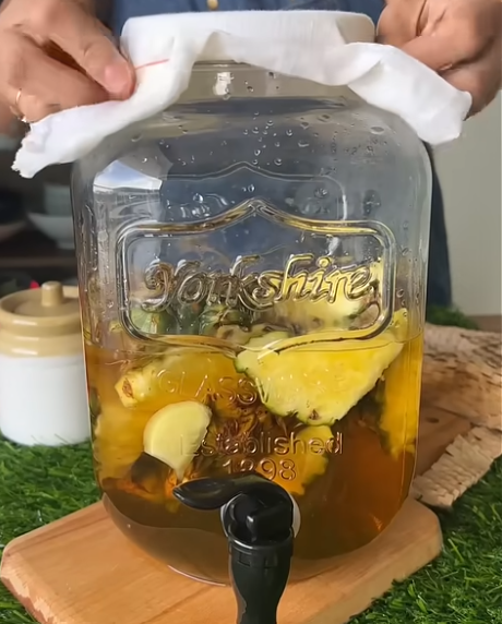 After bubbling reduces, strain the liquid and store it in airtight bottles. Allow it to age for 30–45 days.
